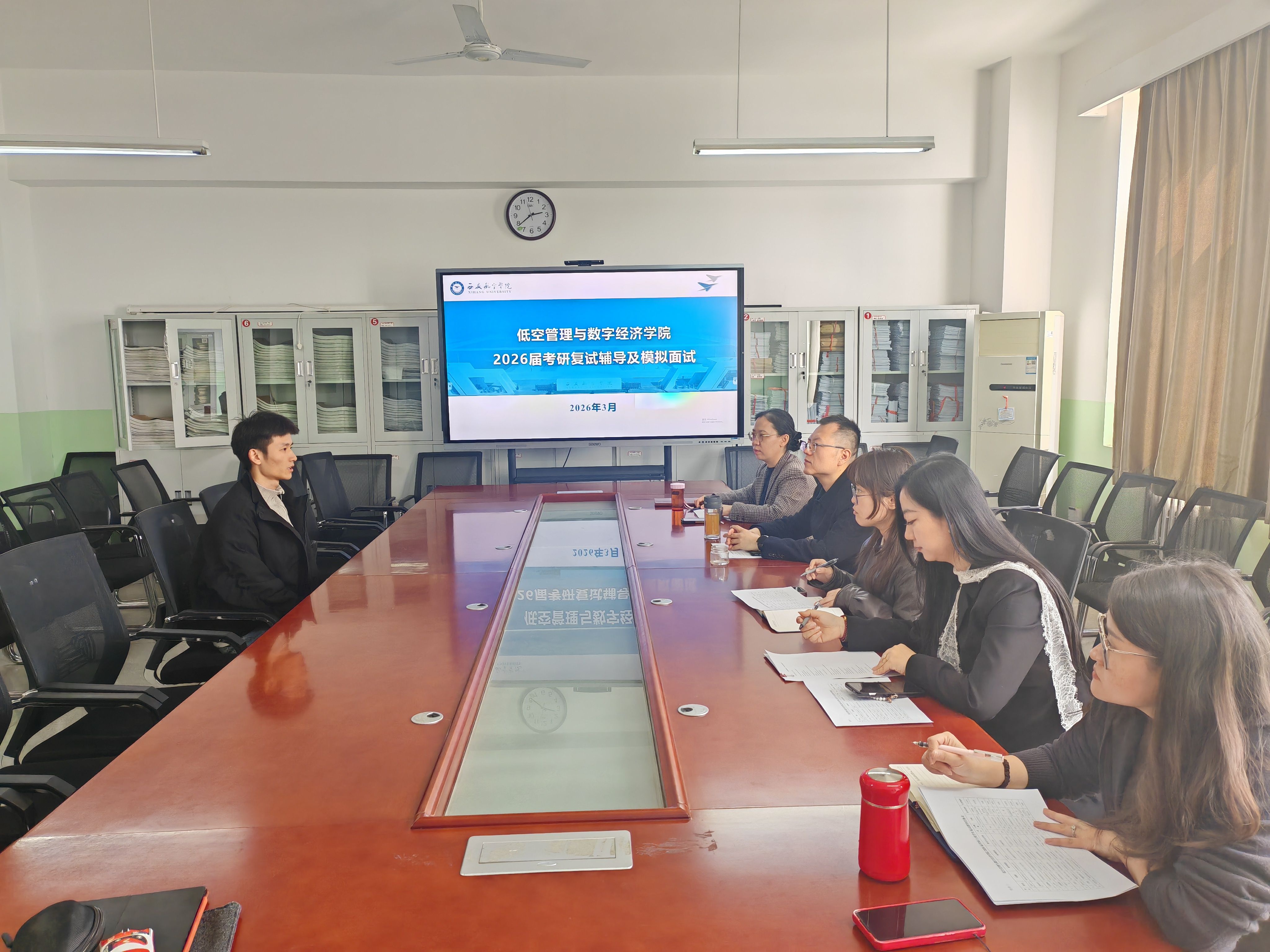 为切实做好2026年考研复试服务保障工作,帮助考生熟悉复试流程、提升应试能力、缓解备考焦虑,3月20日,低空管理与数字经济学院在莲湖校区教学北楼343会议室成功举办考研学生复试模拟面试活动。学院党委副书记(主持工作)仇建华、4名专业教师代表、辅导员及进入复试阶段的考研学生参加本次活动。