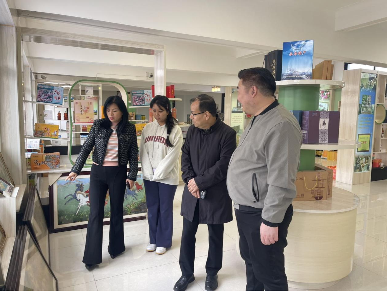 史亚洲一行还考察调研了永寿县槐海旅游产品开发有限公司,在总经理耿秋红女士的带领下,走进企业产品展厅,走访企业食用油生产基地。永寿县槐海旅游产品开发有限公司以农产品加工销售为主业,产品包括槐花蜜、食用油、黑猪肉、手工挂面、小杂粮以及土织布、剪纸、刺绣等非遗传承产品,是提高农民收入,助力乡村振兴的典型代表。调研期间,双方围绕电商人才培育、直播助农等议题深入交换了意见。