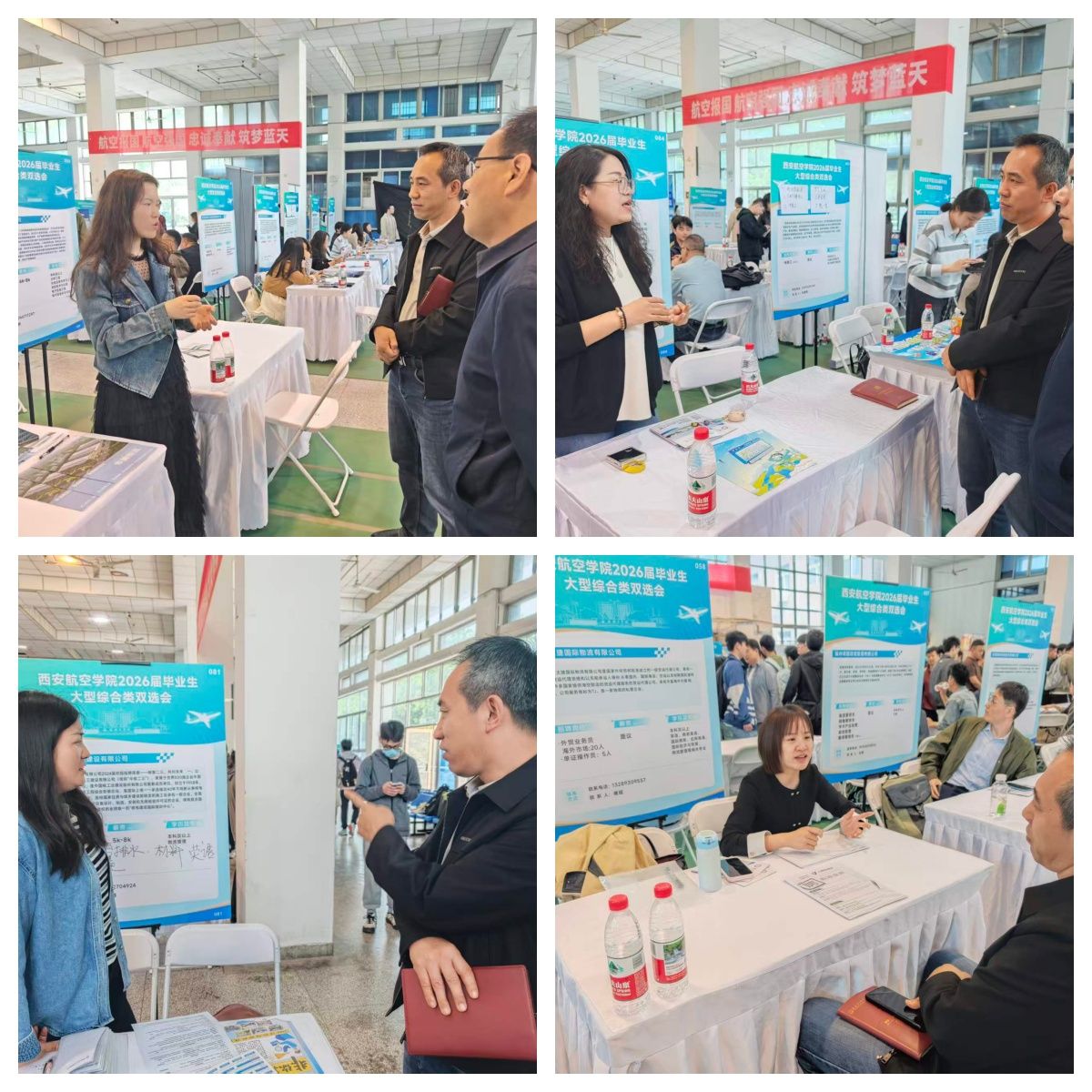 走访过程中,学院领导先后深入西安华翰航空客货物流服务有限公司、西安太捷国际物流有限公司、中国核工业二三建设有限公司、西安龙湖物业管理有限公司、中国人寿保险股份有限公司等企业展位,与企业负责人及招聘专员面对面深入交流。