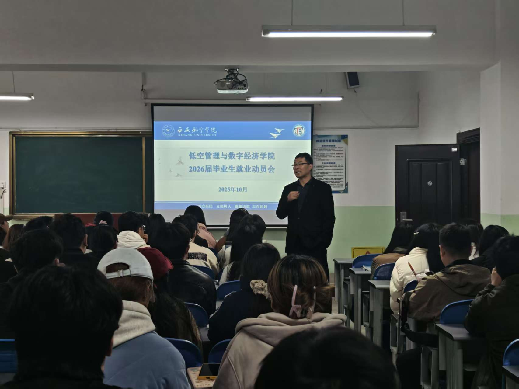 为助力毕业生更好更高质量就业,顺利通过教育部教育教学审核评估工作,低空管理与数字经济学院于10月20日至23日再次分专业召开2026届毕业生就业暨审核评估动员会。学院党总支书记张鹏和党总支副书记班奕出席会议并做动员讲话。