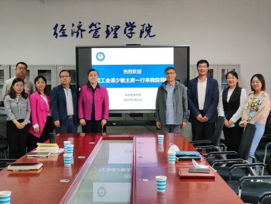 为更好地服务师生员工,搭建校工会与各二级学院沟通的桥梁,5月25日上午,工会主席谭少敏、副主席张瑞民和杨琳老师一行3人赴经济管理学院走访调研。院长史亚洲、党总支书记张鹏、工会主席王馨及部分教师代表参加了座谈。座谈会由张鹏主持。