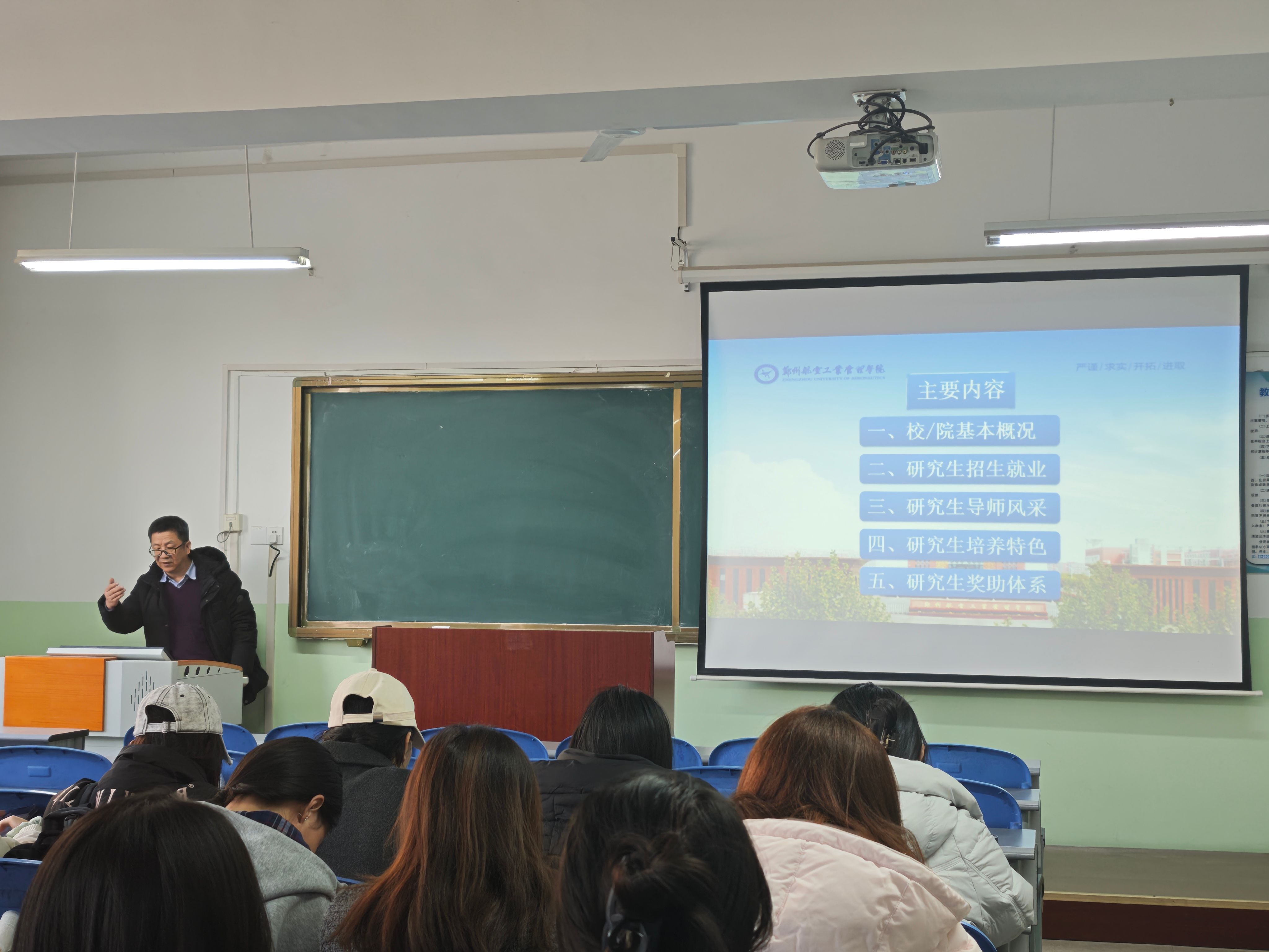 宣讲会上,王永刚院长全面介绍了郑州航空工业管理学院的发展历程、办学特色、学科优势、师资力量、硕士点设置、学费标准及奖助政策等内容,并与在场学生积极互动,耐心解答同学们在报考、备考及专业选择等方面的问题。
