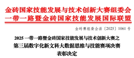 我校高度重视此次赛事,赛前组建指导团队,开展针对性培训,梳理选手知识体系并强化实操技能;同时,参赛学子主动打磨优化分析方案。最终,参赛队伍凭借严谨的数据分析思路和高效的问题解决能力,彰显了我校数字化新文科人才培养的扎实成果,获得大赛组委会认可。此次获奖不仅是对学子专业能力的肯定,也体现了我校深化人才培养模式、推动专业建设与课程教学改革的成果。未来,我校将以此为契机,深化大数据领域的教学与实践探索,持续培养符合社会需求的复合型技术技能人才,为服务“一带一路”暨金砖国家技能发展与技术创新贡献力量。(文、图/低空管理与数字经济学院 刘欣萌 审核/史亚洲)